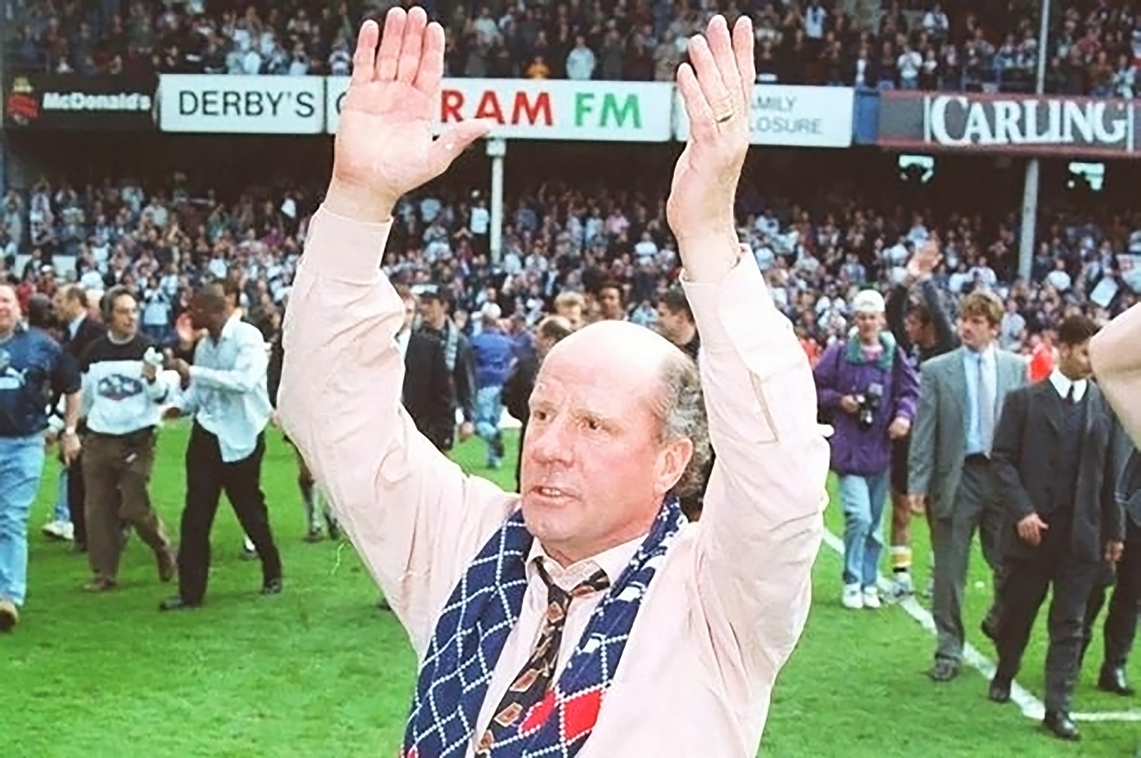 The Baseball Ground exploded into scenes of joy and celebration. Was that the goal that would finally take the Rams to the Premiership? After an agonizing 25 minutes the final whistle blew, Derby had done it. Fans rushed on to the pitch to celebrate with the players and coaching staff.