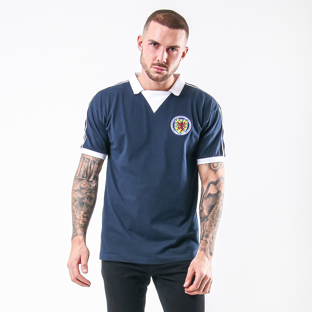 Scotland had a wonderful blue Umbro home shirt at this tournament with World Cup embroidery around the national crest, which was used in the match against the Dutch. Holland lined up in their white Adidas away kit, which was strange given the lack of orange on the Scotland strip.
