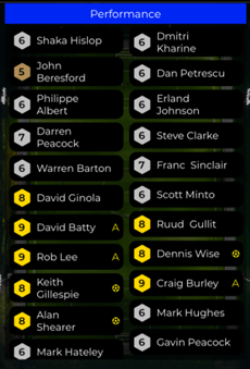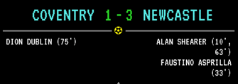 We absolutely murder them from the off. Asprilla threads the ball through to Shearer, who bangs in the opener. Then the Colombian gets on the scoresheet himself with a tidy finish after good work from Rob Lee. We’re swaggering all over the pitch and the hosts can’t get a kick. Another Shearer goal, from another Tino assist, puts us out of sight and I’m in the luxurious position of being able to sub the magnificent Asprilla, giving Big Mark Hateley a run-out for the latter stages.