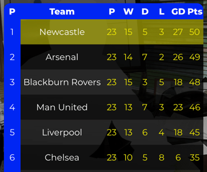 We left the last instalment with the season just past the halfway stage and my Toon side third in the Premier League, four points off reigning champions Blackburn.