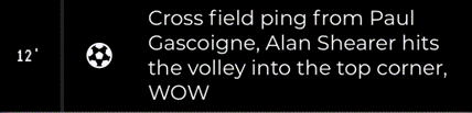 The post-match ratings are a joy to behold. It’s Gheorge Hagi’s finest outing to date, whilst veterans Pearce and Beardsley roll back the years with virtuoso performances.