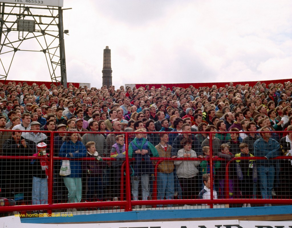 Stuart Roy Clarke from Homes of Football brilliantly captures Boro fans on the standing terraces of Ayresome Park in the 90’s watching the match. The stadium was designed by famous architect Archibald Leitch and was opened in 1903, it remained the home ground for Middlesbrough FC until they moved to the modern all seater Riverside Stadium in 1995. Two years later, the 26k capacity Ayresome Park stadium was demolished and replaced with housing.