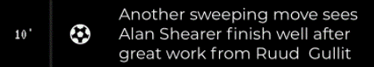 Ruud Gullit stamps his authority on the game early with a first-class assist for Alan Shearer. I always knew they’d get on.