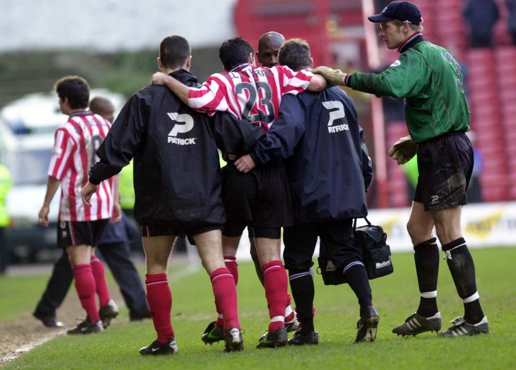 One minute later McInnes played a ball in towards Johnson in the middle of the park. It would later be described by Blades striker Laurent D’Jaffo as a “pass from God” and Santos lunged two footed towards Johnson and the ball. The Baggies midfielder flew into the air and came down in a crumpled heap. Despite the protestations from Blades defenders Robert Page and Keith Curle, the referee Eddie Wolstenholme instantly produced the red card and Santos was given his marching orders. Johnson had to be restrained on the deck by teammates and his physio.