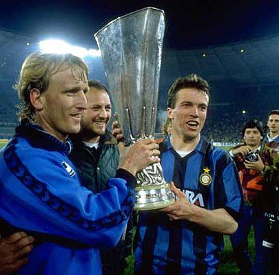 The second leg at Stadio Olimpico in front of 70k Romans was a tense affair and AS Roma managed to secure a 1-0 victory courtesy of a goal from striker Rizzitelli but Inter’s defence held firm, denying their opponents any further opportunities. The victory in the second leg was not enough to overturn the deficit from the first leg, resulting in Inter Milan winning the UEFA Cup title with a 2-1 aggregate score.