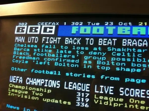 If you grew up following football before smartphones, you’ll know the strange, anxious joy of staring at a dark screen, waiting for a number to change. I’m talking, of course, about Ceefax—and its ITV cousin, Teletext.